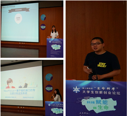上午,400全讯白菜网的“基于脑机接口的专注度训练监测系统”项目、软件学院的“基于微流控芯片技术的乳腺癌早期筛查系统”项目、西北大学生命科学学院的“基于酶联免疫吸附实验原理应用凝集素检测流感易感人群方法的研究”项目的学生代表也进行了精彩分享。