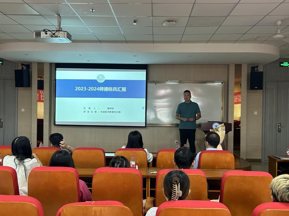 “师德标兵”董明皓结合个人成长发展经历进行了师德师风宣讲,他勉励全体青年教师要恪守师德规范,不断开阔眼界,既要仰望星空也要脚踏实地,在保持学术定力的同时不断迭代学术方向,以三十年为尺度讲好每一堂课。他指出,作为教师要时刻牢记立德树人根本任务,以“四有”好老师标准严格要求自己,做学生为学、为事、为人的大先生。