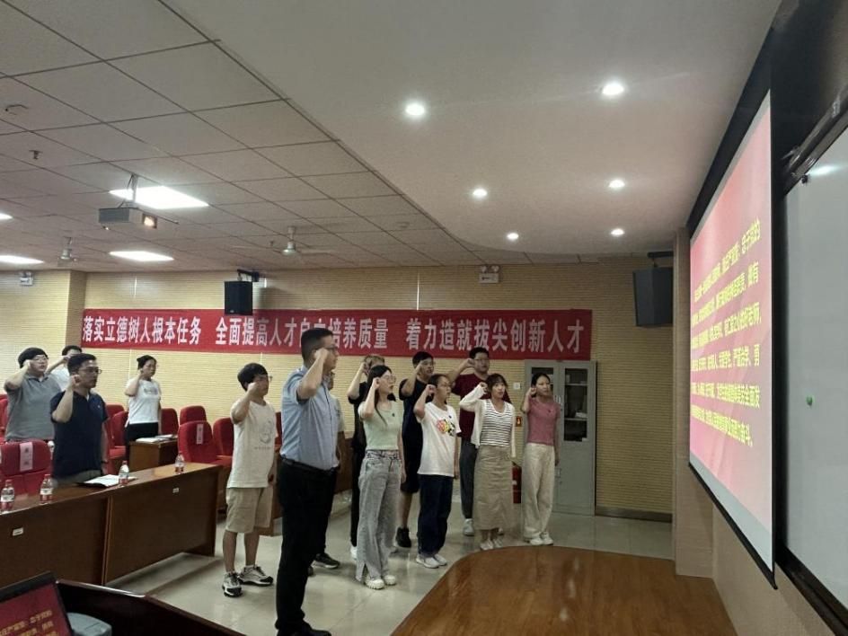 会上,学校首届教书育人典范谢晖老师为10位新入职教师佩戴校徽,带领全体教师庄严宣誓。激励新教师们坚守初心,满怀热情,以教育事业为己任,为学生的成长和未来贡献自己的力量。